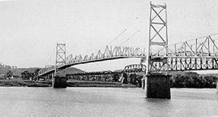 Built 1928, The Silver Bridge was an eyebar-chain style bridge and named for the color of its aluminum paint. The Silver Bridge went over the Ohio River to Gallipolis, Ohio.
